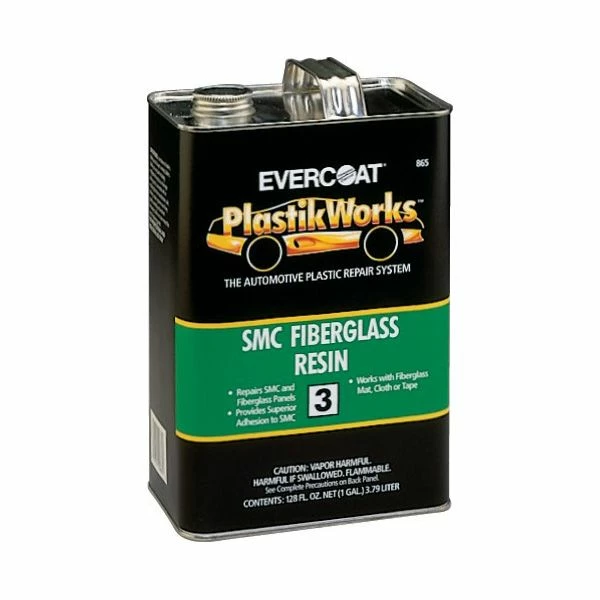 Superior adhesion to all types of SMC and fiberglass. SMC resin is a polyester-based resin used for repair of SMC and fiberglass panels and parts. More effective on SMC than conventional fiberglass-type resins. Formulated to use with fiberglass mat, cloth and tape. Waterproof and impact resistant. Working time of 20-30 minutes. Cures to a sandable surface much faster than regular fiberglasss resin. White cream hardener included. NOTE: Correct catalyzation and thorough mixing are necessary. Read directions on can thoroughly.