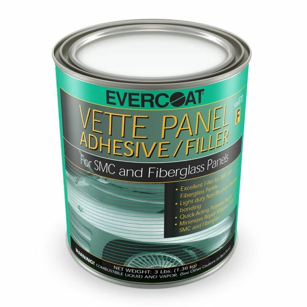 A polyester body filler for fiberglass and SMC panels. No shrinkage. Helps prevent repair mapping on seam lines over fiberglass repairs. Used to bond fiberglass panels and SMC for light duty and non-structural applications. Blue cream hardener included.